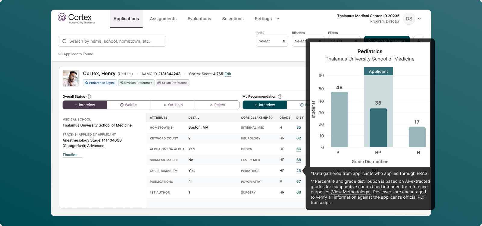 By implementing these analyses and continuously validating the tool’s performance, Thalamus AI Insights aims to provide Cortex users a reliable and objective framework for residency selection, helping program directors and evaluators make informed decisions based on a comprehensive understanding of applicant performance.